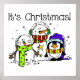 A cute holiday design featuring two snowmen and a penguin dressed in scarves, winter hats, and earmuffs and text that reads It's Christmas on holiday T-shirts, sweatshirts, mugs, bags, cards, stickers, keepsakes, pillows, and much more!