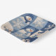 An enchanting pattern filled with delightful snowmen and sparkling snowflakes, beautifully set against a blue and white quilt background