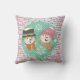 Snowmen Couple Dots and Typography holiday pillow, so pretty and colourful, features a white typography background with colourful text that reads Seasons Greetings and Happy Holidays with an aqua blue circle with white dots and each side has a smiling snowman couple with a hat, scarf, carrot nose, and snowflakes!