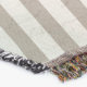 Snowmen Dots and Stripes holiday throw blanket, so pretty and colourful, features a white and grey diagonal stripe background with a black circle with white dots and each side has a smiling snowman couple with a hat, scarf, carrot nose, and snowflakes!