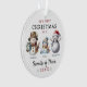 Snowman Family of Three First Christmas Ornament for parents who just had their first child with mum, dad and baby snowmen. Our first Christmas as a family of three personalised snowman keepsake ornament.