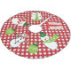 Snowmen, Gifts, Ornaments holiday tree skirt features a red with white stars background with three adorable snowmen in top hats and red, white, and green winter scarves, two pretty wrapped Christmas gifts, and two green holiday tree ball ornaments! This fun and colourful Christmas mice design holiday tree skirt makes a great gift or get one for yourself to enjoy for years to come!