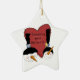 Snowmen Melt My Heart keepsake holiday ornament featuring two snowmen with stovepipe hats and a big red heart .