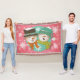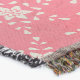 Snowmen Pink and Blue holiday throw blanket, so pretty and colourful, features a white snowflakes on pink background with an aqua blue circle with white dots and each side has a smiling snowman couple with a hat, scarf, carrot nose, and snowflakes!