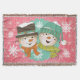 Snowmen Pink and Blue Holiday Throw Blanket