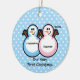 Twin's First Christmas Ornament features cutest blue & pink snowmen set on blue & white polka dotted background! Personalise with your baby information and date and you're all set to go! Wonderful dated keepsake gift for your Twin's 1st christmas.