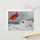 Snowshoe Rabbit & Red Cardinal Bird Watercolor Art Postcard