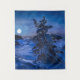 Snowy Baltic sea coast with fir tree in night Tapestry
