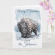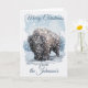 A snow covered bison/buffalo waits out a Christmas morning snowstorm. Personalise it to make it your own! Rustic western, wildlife art for your personal, small business, or corporate holiday card.