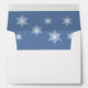 This is the coordinating envelope for the 5X7 Offset Snowy Blue Baby Shower Invitation and Offset Snowy Blue Snowflakes Baby Shower Invitation. It is a pure white and the inside is filled with delicately, illustrated snowflakes on a blue background.