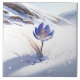 This stunning ceramic tile features a beautiful illustration of a blue crocus breaking out of the snow on a snowy mountain. The crocus's delicate petals represent nature's resilience and strength as it perseveres through the harshest conditions to bloom and thrive. This image reminds me of the beauty and magic found in unexpected places and the power of hope and perseverance. Display this tile in your home or office as a symbol of resilience and hope.