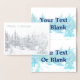 A stylised, blue monotone image of conifer trees covered in snow. Text reading "Merry Christmas" also appears. Add your own additional text.