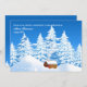 A winter scene featuring snow-covered pine trees and a cabin in the woods. (FP)