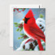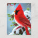 This beautiful digital graphic features a snowy cardinal bird perched atop a green botanical branch.