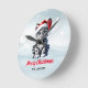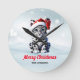 Snowy Christmas Santa Cute Snow Leopard Cub Round Clock