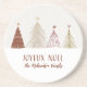 A festive forest of red, gold, and blush-pink Christmas trees stands tall against a snowy cream-striped background on this elegant round coaster. “Joyeux Noel” appears in classic typography across the snow-covered base, with space to personalise in matching red script. Perfect for holiday gatherings, hostess gifts, or cosy winter décor. Use the easy template to add a name or custom phrase. Prefer a different greeting? Just message or e-mail beachpausedesigns@gmail.com for a cheerful tweak.