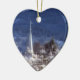 A snow covered church steeple, topped with a little white cross, nestles in sunlit, forested hills of Rainier, Oregon as the mountain ranges beyond are still darkened with an early morning twilight.
