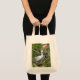 The printing came out very well, better than I had anticipated. The natural color fabric is sturdy with strong seams and comfortable handles. This tote fits easily over my shoulder. As it is filled, the bottom flattens out--very cool! I would buy this product again. This grocery tote holds a lot of groceries! The image quality was very good. The colors were a little darker than I had expected. The darkness may have been due to printing on a natural color fabric rather than on white. The cat design is attractively centered on the tote. The spirit of the design is very lively, just as it appears on the Zazzle website.