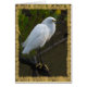 The Snowy Egret stands tall and majestic as he looks into the pond for a fish. He looks terrific on this card.