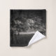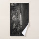 A black and white towel collection featuring a peaceful winter landscape design.