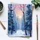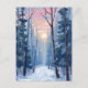 Snowy Forest Path Winter Sunlight Watercolor Painting Postcard