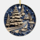 Transport yourself to a serene holiday retreat with this "Snowy Forest Retreat" ornament. Featuring a charming snow-covered forest with majestic pine trees, a cosy cottage, and a tranquil boat docked by a winding stream, this design captures the peaceful essence of winter. The intricate details and rich blue tones create a magical scene, making this ornament a perfect addition to your holiday décor or a thoughtful gift for nature lovers.