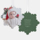 This unique Christmas ornament card features a snow flurry frame around a single full photo. The simple holiday card design is perfect for a variety of photos - family photos, new baby photos, newlywed wedding photos. The back is a festive green with a coordinating snowy pattern and room for a custom greeting and signature. This festive custom card is versatile and with the text area, it can work great as a holiday birth announcement, a wedding or save the date announcement or just a simple Merry Christmas greeting. The winter theme also works well as a non-denominational business or corporate card as well.