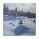This photo features a simple landscape with deep drifts of snow, deep shadows, and snow laden trees.
