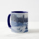 This photo features a simple landscape with deep drifts of snow, deep shadows, and snow laden trees.