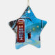 Snowy London winter couple red umbrella Ceramic Tree Decoration