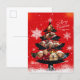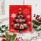 The stylish Christmas tree featured on the holiday postcard stands out against a vibrant red snowy background. This customizable card allows you to add your own photos, making it a perfect option for spreading joy to your family and friends.