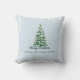 Snowy Merry Christmas Tree Pillow Light Blue