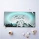 Snowy mountain mysterious blue neon light monogram. Digital composition of my own photograph of magnificent mountain Storžič in Slovenia. I added a neon light surrounding the mountain in Photoshop to create a mysterious scenery.