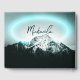 Snowy mountain mysterious blue neon light monogram. Digital composition of my own photograph of magnificent mountain Storžič in Slovenia. I added a neon light surrounding the mountain in Photoshop to create a mysterious scenery.
