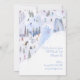 A cute and beautifully detailed watercolor-painted bustling mountain alpine ski village with snowy mountains, chalets and shopkeepers, skiers skiing, visitors building snowmen, villagers gathering, children playing, dogs barking and Christmas bells a'ringing in this illustrated winter holiday pattern highlights this holiday party invitation with editable text on the front and back of the invite.