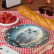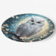 Snowy Owl And Moon With Sparkle, Paper Plate