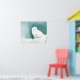 A serene and striking snowy owl sits against a soft teal winter sky, its piercing golden eyes standing out against pure white feathers and drifting snow. This minimalist arctic wildlife illustration captures the quiet beauty and mystery of winter, making it perfect for nature lovers, bird enthusiasts, and those who appreciate calm, elegant decor. A perfect choice for owl lovers, wildlife collectors, and fans of clean, modern nature-inspired artwork.