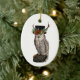 Commemorate the holiday season with The Snowy Owl Ceramic Ornament. Our Snowy Owls Top Hat is overflowing with Holiday magic, lavishly adorned with white budding roses, pine sprigs, poinsettias & Mountain Holly. The back of this special ornament features more wintery sprigs of pines and poinsettias as well as customisable text. Change the date and add your name if you choose.