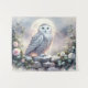 Snowy Owl in Moonlit Winter Garden Tapestry