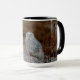 Snowy owl sitting on a rock mug