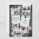 Cute holiday photo card features two photo booth strips, each with three photos and a pale ice blue text panel, for a total of six photos. Personalize with the year and your family name or names in whimsical, festive dark gray lettering, on a rustic chalkboard background dotted with hand drawn white snowflakes.