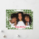 Happy Holidays photo card with green tree pine needles and white snowflake border around your favourite family photo. Created by © Lesruba Designs.
