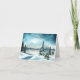 Snowy pine trees near a lake note card