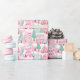 Snowy Pink and Green Christmas Gingerbread Town Wrapping Paper