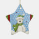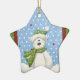 A polar bear with a plaid scarf and green and white stocking cap ornament.