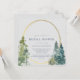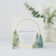 Your bride will love this gorgeous floral invitation! This design features rustic pines with gold accents and gently falling snow.