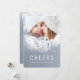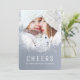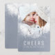 The charming dusty blue colour and white winter splashes holiday photo card 'Cheers'