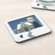 Snowy, Starry Night, with Cat and Santa Sleigh Coaster