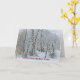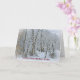 My original artwork on this winter Christmas card is featuring my original photograph of snowy trees in a field by a forest; styled with a watercolor fantasy effect for an illustrated and whimsical appearance. The front of the card states "Sending Warm Christmas Wishes" and the inside of the card states "May this Christmas bring a warm, happy season with joy and happiness always! Merry Christmas!".