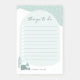 Wintry chic personalised post-it note pad features "things to do" at the top in handwritten script lettering with 10 lined checkboxes, on a snowy village scene with snow-covered houses for a cosy hygge vibe. Personalise with a name, company name or phrase along the bottom.